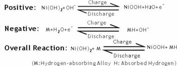 RAYWILL Battery use nickel hydroxide for the positive electrode, hydrogen absorbing alloys in its negative electrode, and potassium hydroxide solution in its electrolyte. The electro-chemical processes are described as below: