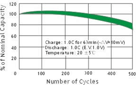 °Cmaximum , Rate -of -Temperature -Rise (dT/dt) of 0.7-0.8°C/min. Negative -Delta-Voltage method with 10-15mV/cell . Timer Control can also be applied ,for a capacity input of 120% of nominal. For maximum capacity , trickle charge can be applied after quick -charge is terminated. We recommend trickle-charge of 0.1C for 2 hours, or 0.2C for 1 hour.